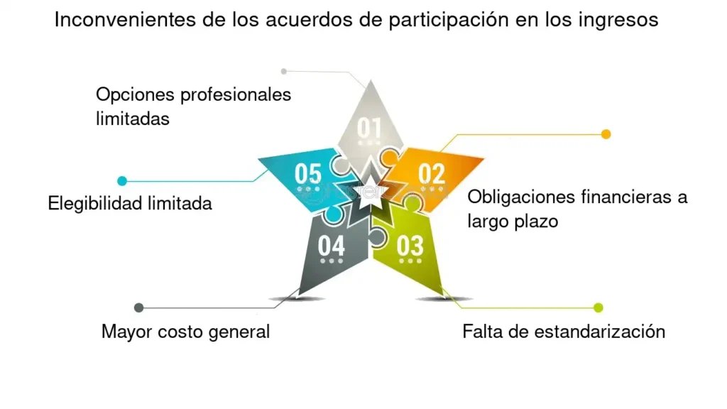 El acuerdo de participación en los ingresos que un estudiante acepta firmar para ceder una parte de sus ingresos futuros, normalmente entre el 3 y el 4 por ciento, durante un máximo de 10 años después de graduarse. Los reembolsos totales suelen tener un límite de 2,5 veces la financiación inicial del ISA. La mayoría de los ISA ofrecen un salario mínimo para comenzar a pagar y, si no se alcanza ese mínimo después de un período de tiempo, la universidad en su totalidad absorbe el costo del ISA.